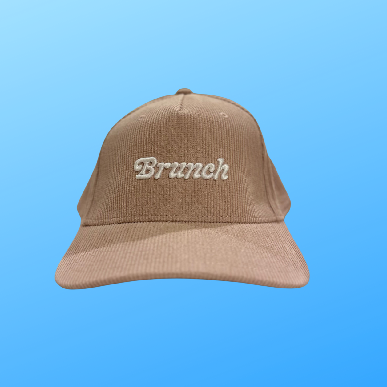 A soft corduroy cap embroidered with Brunch — because brunch isn’t just a meal, it’s a lifestyle.