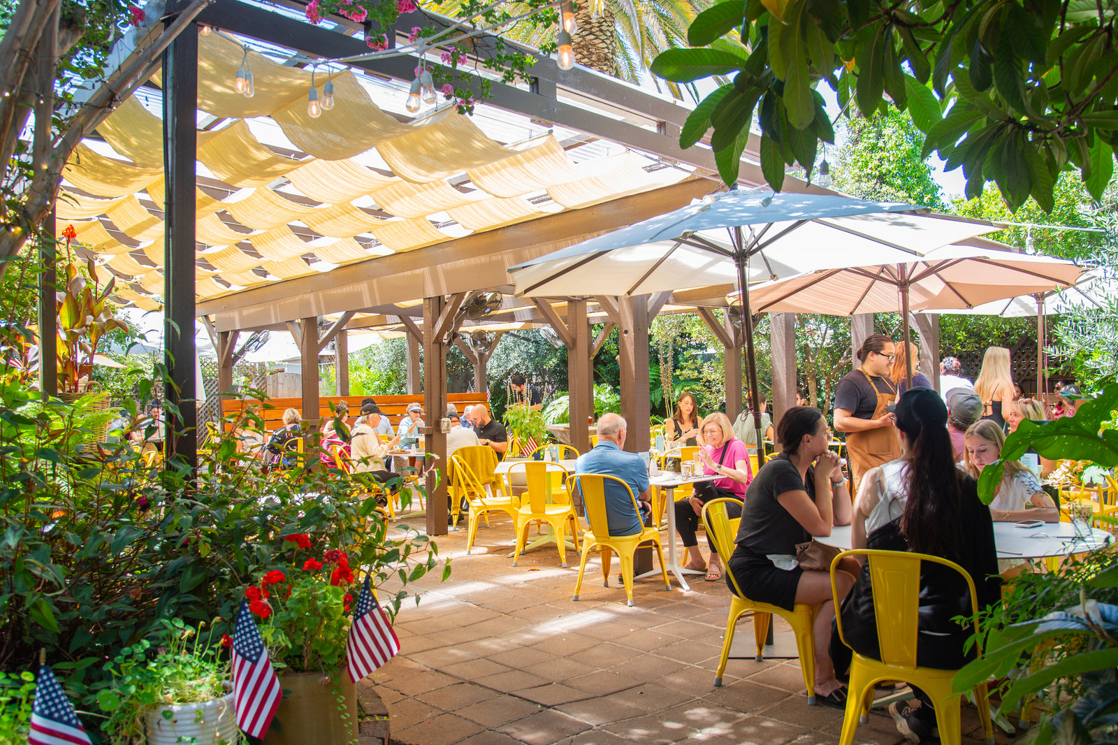 Conveniently located on Sonoma’s town square, you'll find the Sunflower Patio. Our dining patio offers a serene backdrop for casual gatherings and celebrations. Surrounded by lush foliage, soothing fountains, and multiple areas designed for mingling and relaxation. Sunflower patio offers a unique and memorable experience for any occasion.